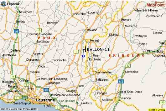 Le ballon a été récupéré aux environs de Montreux ( Suisse ), à ECUBLENS exactement. A ce propos, je remercie vivement les radio-amateurs pour leur implication dans ce projet ( prêt d'un émetteur GPS, participation à la recherche de la nacelle, aide technique et logistique ) . Sans leur aide précieuse, la nacelle n'aurait jamais été retrouvée le jour même de son lâché ! Merci Encore.